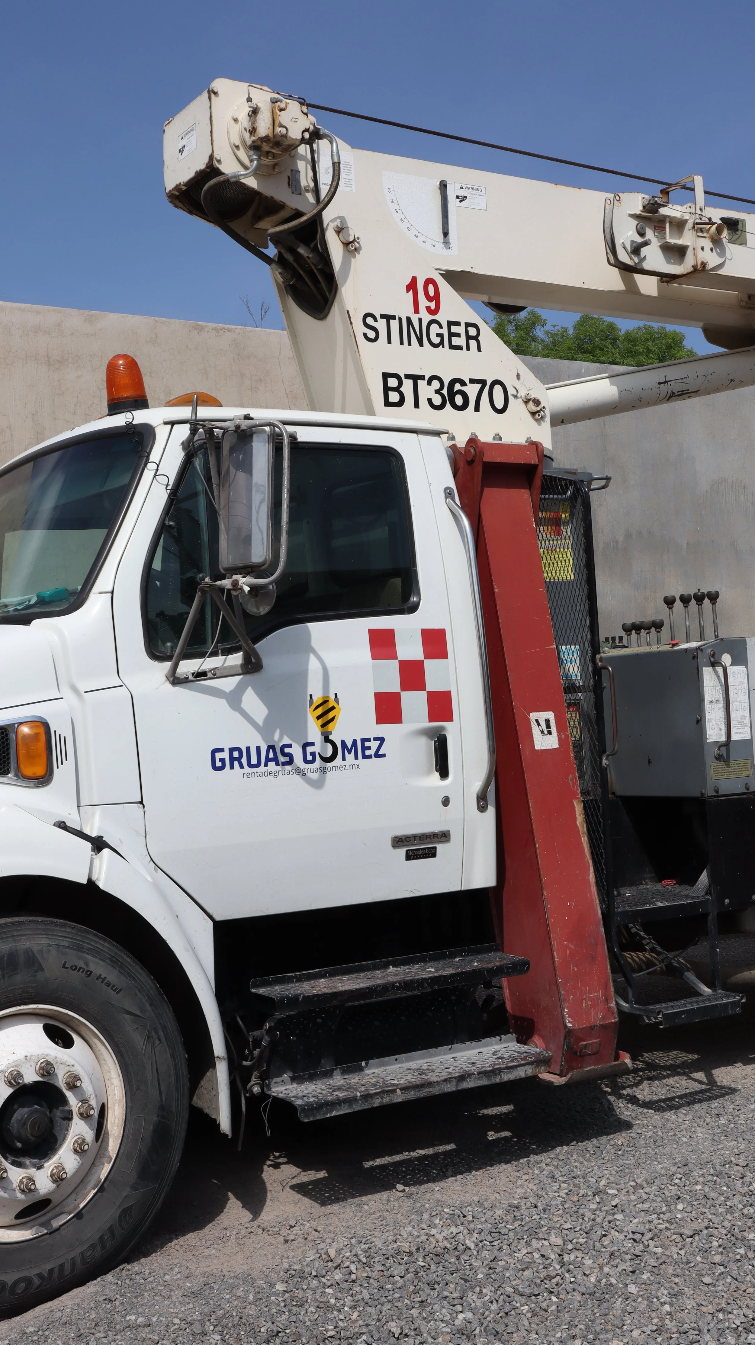 La Grúa Sterling 2008 es un equipo tipo Titán, equipada con una resistente plataforma de 6 metros, ideal para trabajos que requieren movilidad y maniobrabilidad en espacios de obra.